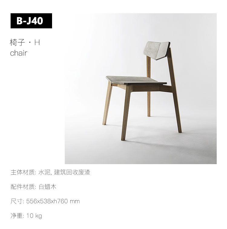 从建筑领域进入家居领域,对于混凝土,设计者往往将目光投向其可粗犷可细腻的气质肌理,但就混凝土家具本身使用感的改良,却囿于技术和思维的局限而甚少涉足。但对于使用者来说,混凝土家具在使用上的体验感才是迫切需要得到关注的。硬朗与舒适,在混凝土这种材质上是否能和谐地融合?将关注点回归到人身上,“H”椅子以当代视野重塑混凝土的生硬形象。椅背与坐面组成特殊夹角,满足人体工学原理,使得其能更好地贴合臀部和腰部。