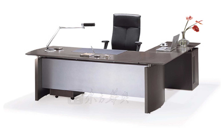 ※  独特而时尚,木制行政人员书桌主要由一张两侧微弧形的桌面以两旁湾间隔板组成,前面四分之三高度的面板配以哑面银色,而附加的桌面由掩门式或开放式的小文件柜以放置电脑主机。多元化的储物配置包括活动文件柜、掩门地柜或地柜由中抽屉、上层架及两边掩门构成,另有归一设计的组合柜包括下部掩门、玻璃门及上部开放层架,同款弧形设计的会议桌可选择附加线缆储存系统。