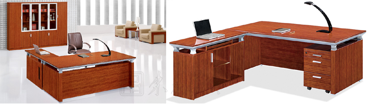 ※  此款班台木纹鲜明,配以银色为点缀,独特的线形设计韵含了一种灵气,使人眼前一亮。多元化的桌面设计能满足您各种组合变换、空间互补的要求。附助储物装置方面则备有流动式矮柜及档柜。