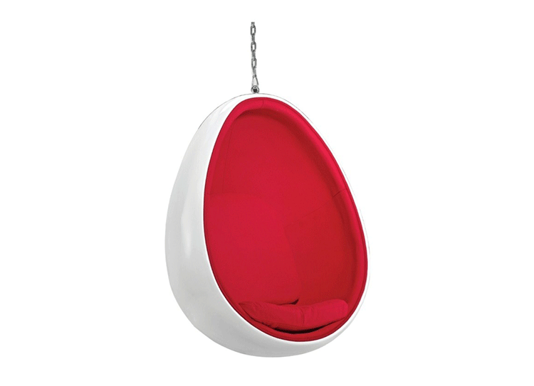 egg hanging chair(蛋挂椅)设计雏形为其经典的“球椅”,是介乎于家具和建筑之间的一种产品,它好像“房间里的房间”,椅子很矮,坐进去,就仿佛陷入另外的一个世界,能迅速拥有安静舒适的环境,外界的噪音也被抵挡住。可以躲在里面冥想、放松身心,或者打私人电话。设计师阿尼奥就在自己那把原版的“球椅”内壁上装了一个红色的电话机,“球椅”提供一个相对私密的空间。椅子底部有轴,能360度旋转,坐在里面的人向外看,眼前的风景会随着转动而改变。这样,即使蜷缩在椅子里,也不会有与外界完全隔离的孤独感。就是这样一个狭小的空间,却带给了人们无比的安全感与舒适感,也就是这把椅子的诞生,掀开了“PODLIFE” 的篇章。"