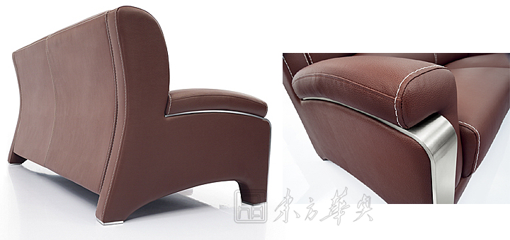 ※  以简单不锈钢和简约结构见称沙发,特别易于配搭,能与任何环境融合为一。椅背和靠手优质真皮,别具雅懿稳重风范;全不锈钢组合的脚架,为整张沙发增加不少视觉趣味。