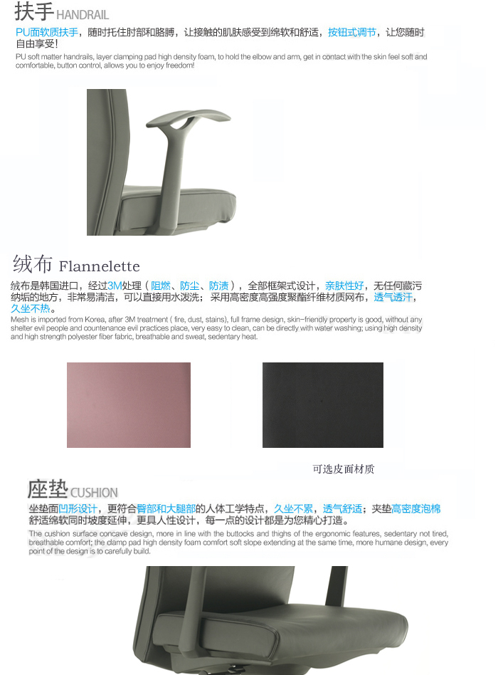 * PU扶手(可选PU升降,水平,左右活动扶手)