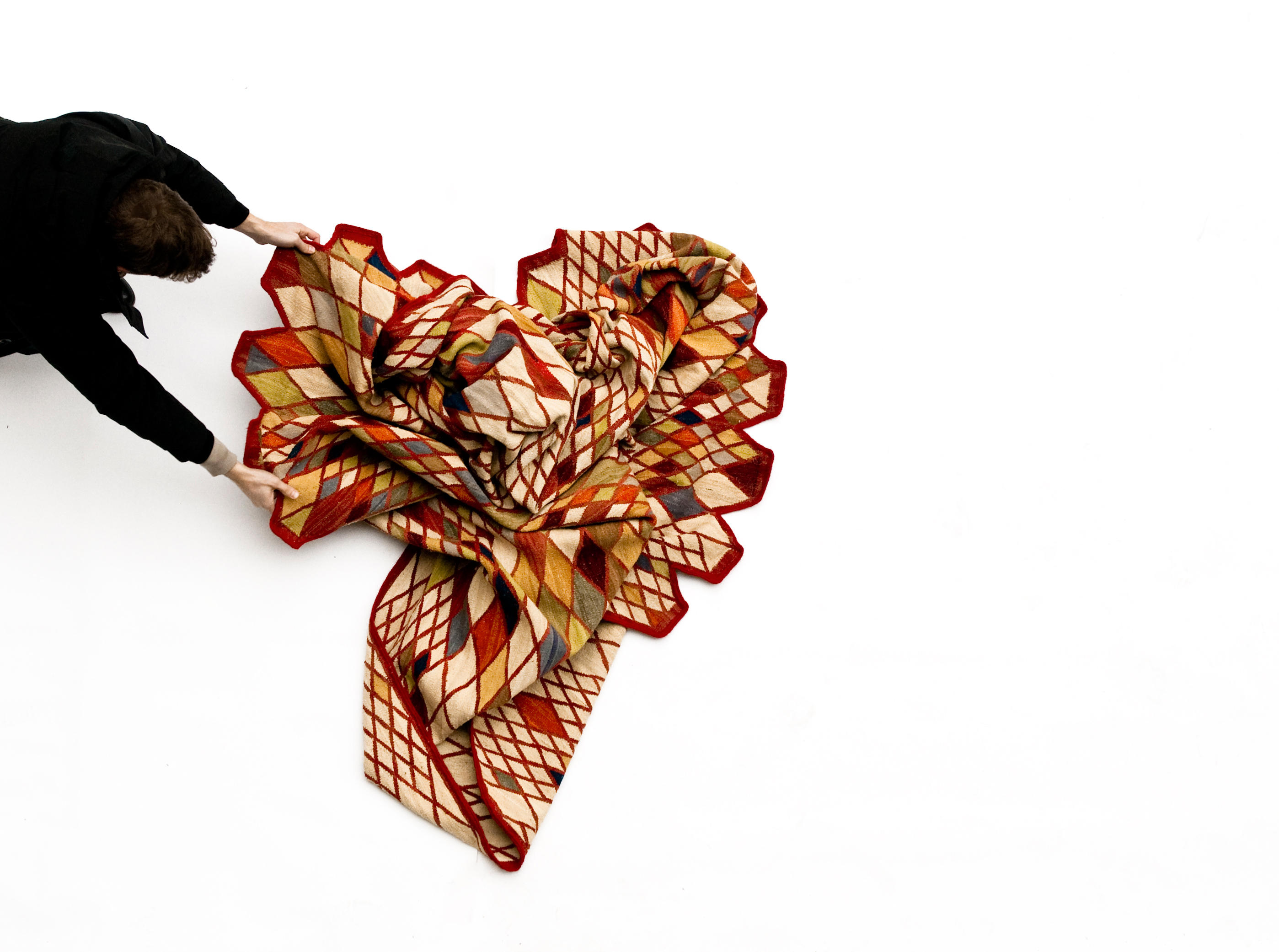 地毯通常被设计成一个图案分布的表面。然而,在格的情况下,模式被定义为一种生成地毯本身形式的建设性系统。彩色条纹的系统,在这种模式,形式和颜色以一种亲密的方式联系在一起,创造了一个不同的范围。——布洛埃克兄弟解释道。