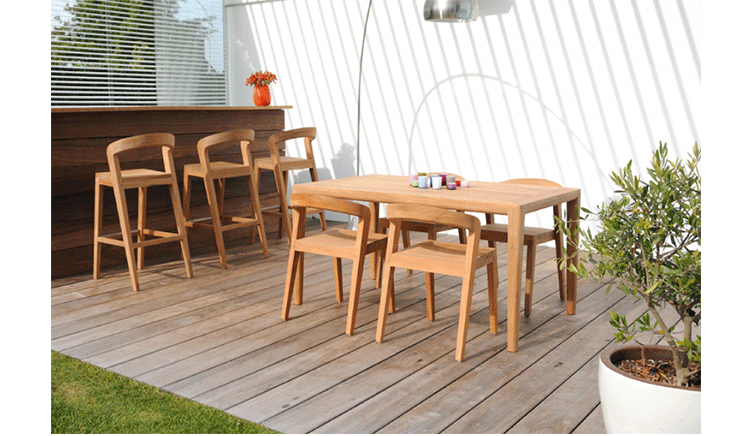 Elegant massive wooden table with an unique contemporary design,rounded edges at the table top and refined table legs.