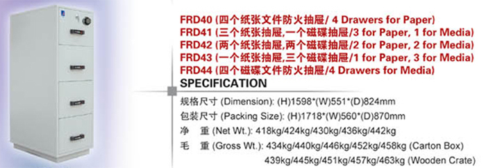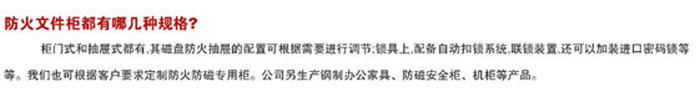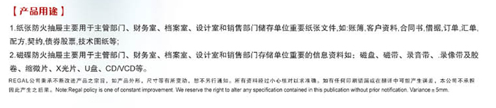 .防火钥匙锁:每节抽屉可配置防火钥匙锁,独立控制。最上面一节抽屉防火钥匙锁为标配。