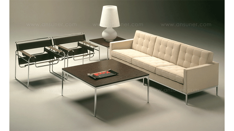 Florence Knoll Coffee and End Tables,designed to furnish the new interiors of postwar America,are scaled-down translations of the lines,gestures and materials of modern architecture.Consistent with all of her designs,the tables have a spare,geometric presence that reflects the objective perfectionism and rational design approach Florence Knoll learned from her mentor,Mies van der Rohe.