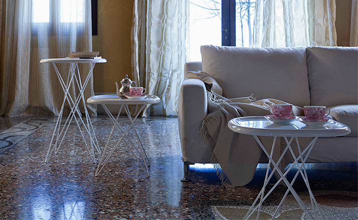 Pizza Table(比萨茶几)是日本著名产品设计师深泽直人(Naoto Fukasawa)设计的作品。Pizza Table的创意来自于邀请友人们围坐在一起如同Pizza一样,桌面的边缘酷似Pizza边缘凸起的轮廓,整个优雅的桌面被细巧的桌腿支撑起来,让人联想到摆放在沙发或桌边是多么得完美。