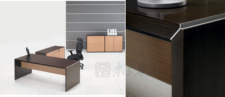 ※ 通过不断研讨及风格重塑,简系列经理台具有鲜明的个性风格,同时又注重功能,追求外观和功用内在统一,从而与传统办公台区别开来,逐渐演变成注重人性和谐的流行款式。 ※ 矩形的主台,从平面到造型,简洁明了,逻辑性强,表现出理性的特点,预设多功能线管理系统。 ※ Y型铝合金台面台脚连接件,巧妙处理木纹对接工艺,内藏式钢架,保证连接强度。
