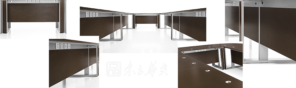 ※  上图为会议桌解剖图,展示会议桌的每个细节,别致的钢木结合脚架,整齐的走线槽,拼接组合成不同的款型!