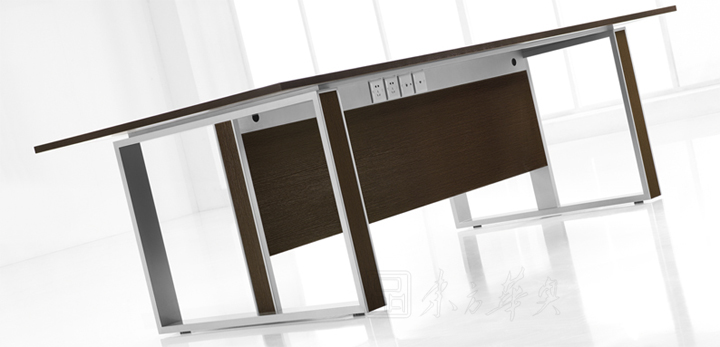 ※  上图为会议桌的侧部展示图,既传统又时尚,厚厚的桌面由同样厚度的拉板连接,增强台桌体的稳固!