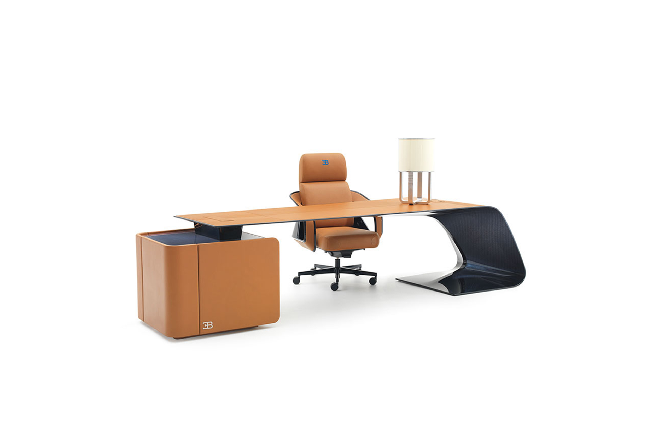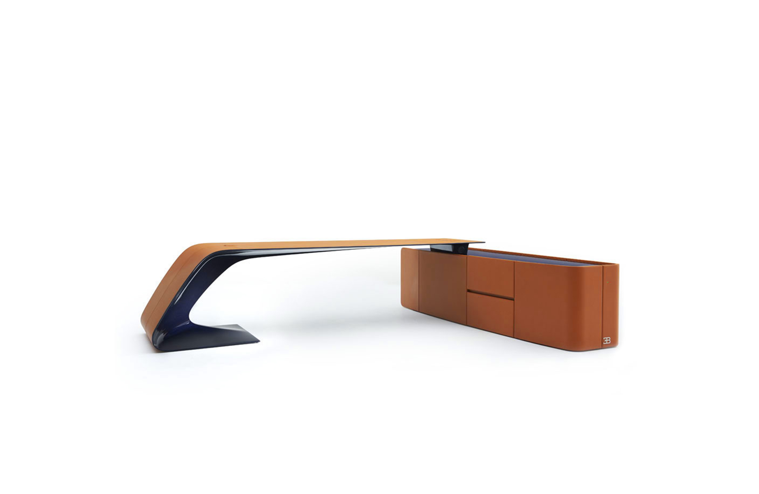 The rectilinear top extends lengthwise from the cabinet, seamlessly sloping to form the opposite base. A re-design of the classic desk, made possible by the outstanding performance of carbon for the structure.