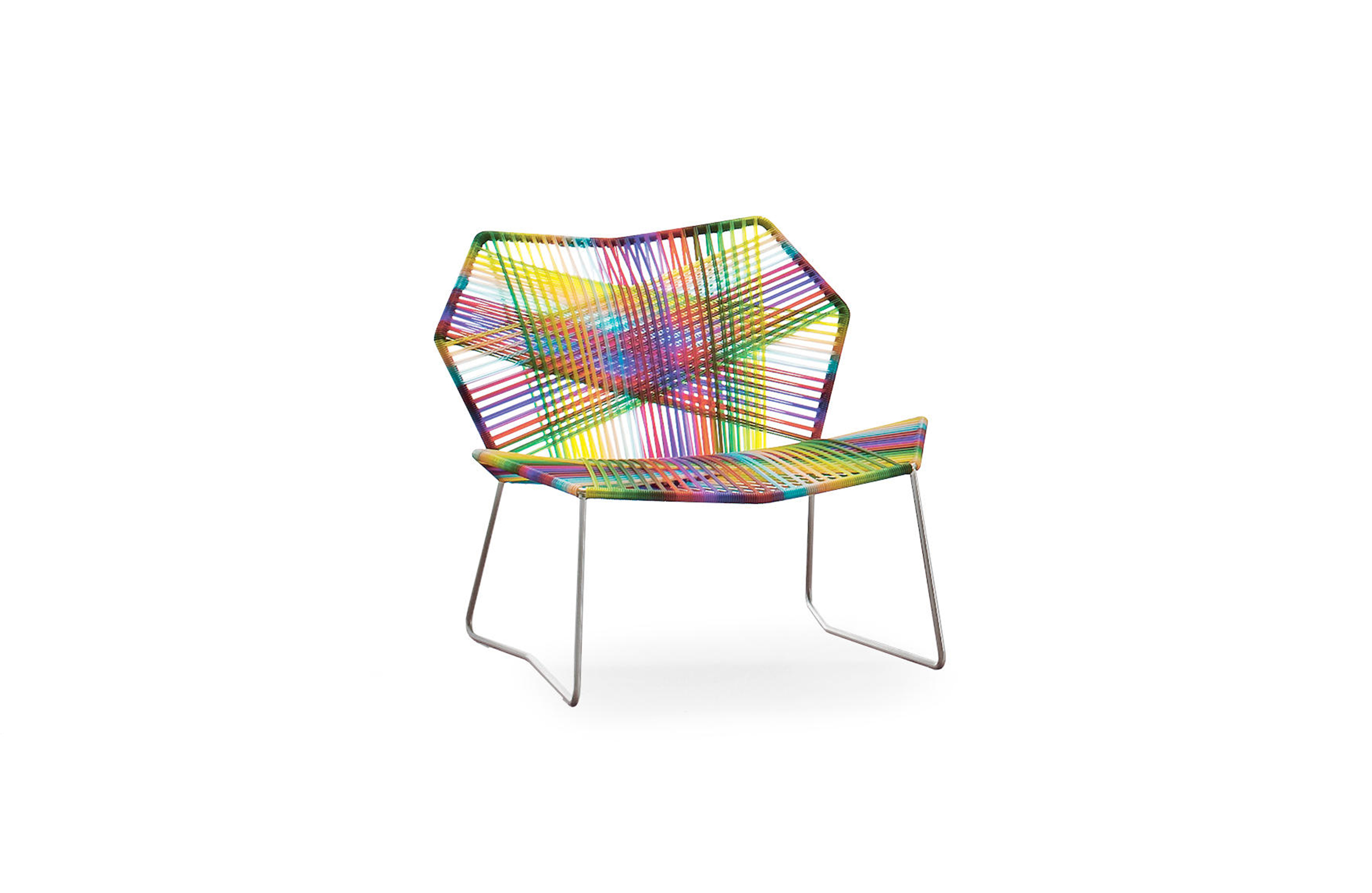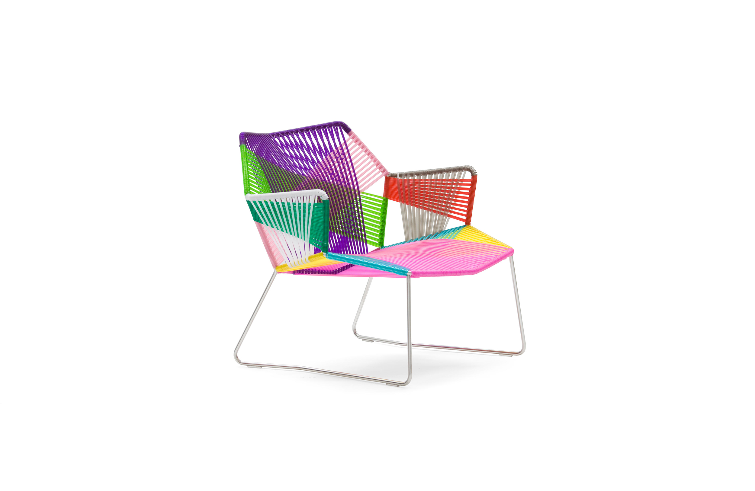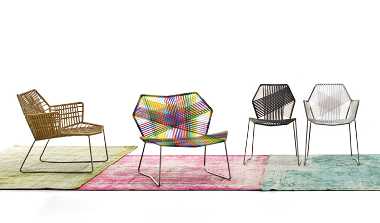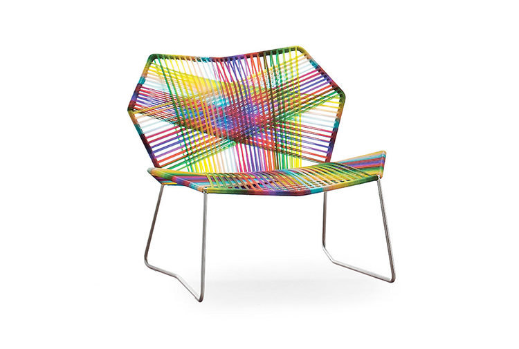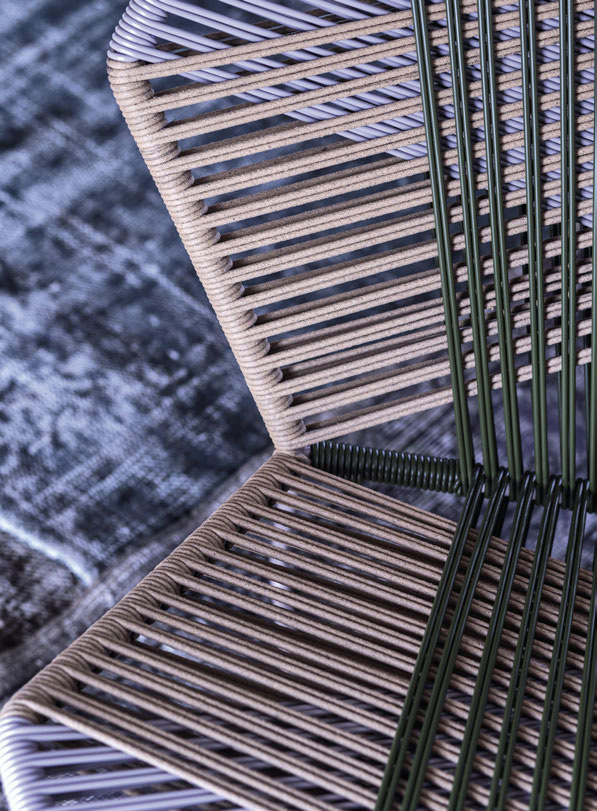 安蒂博迪(Antibodi)的钢管框架成为设计师用于创意改造的起点。框架被包裹和变换,座位根据所使用不同颜色的材料呈现不同的个性。两到三种颜色的线条以螺旋的方式将钢管包裹起来,形成了一种有趣的颜色复杂的设计。