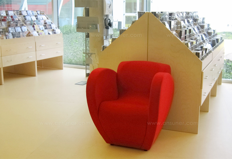 由Ron Arad在1988年设计的一个大的简单的钢椅,展示了一种简单的形式,可以在不影响设计原则的情况下,通过对材料和生产过程的重新解释而被翻译。从建设性的姿态获得的模型变成了工业生产;视觉的柔软和丰满的体积,舒适。更容易探索旋转模制和聚乙烯的使用;在冷泡中柔软的版本,用聚酯纤维包覆,触觉表面的转换;在元素的集合中,形态学和动态形式。