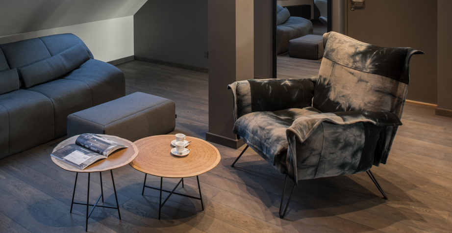 精心研究的设计始于框架、支架的质量。人体工程学决定座位的位置。获得舒适的两种互补方式:支持和包络。椅子和扶手椅在底座上有一个软垫外壳;而躺椅和扶手椅的盖子则直接固定在镜框上,这是一个用来支撑和引诱占领者的囊。这个名字取自于由咖啡和朗姆酒制成的加勒比海甜酒,是关于双重身份的,这是对一种对立的游戏的暗示。姿态既正式又非正式,扶手的对称和不对称,框架的棱角和曲线。所有的用途都是允许的:等待,休息,放松。