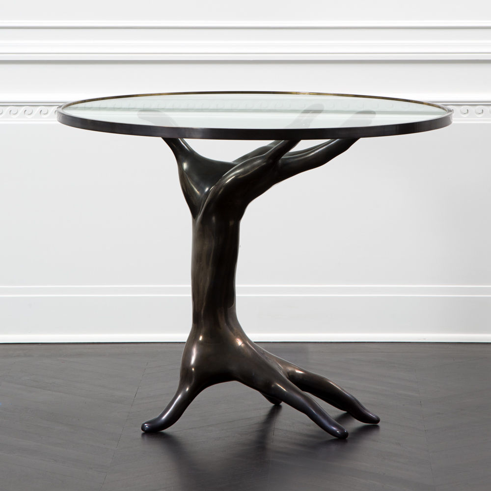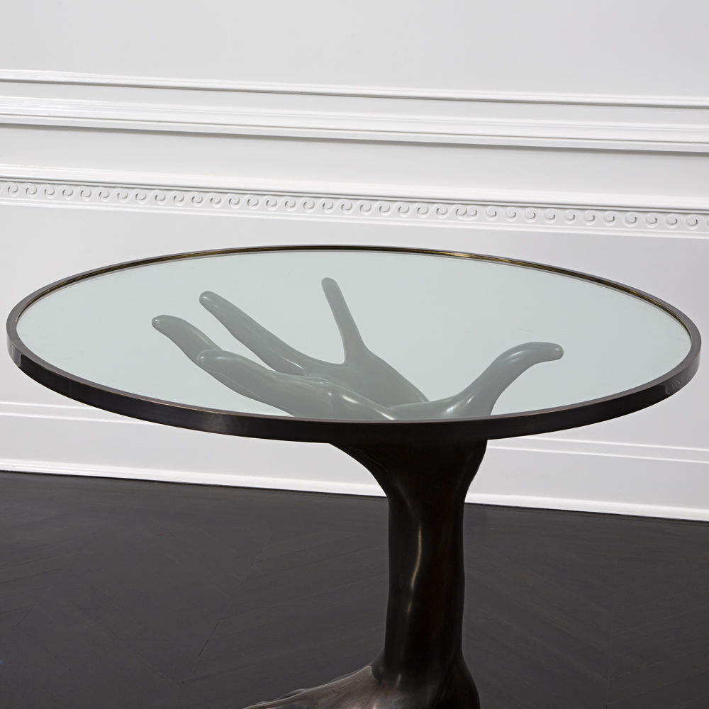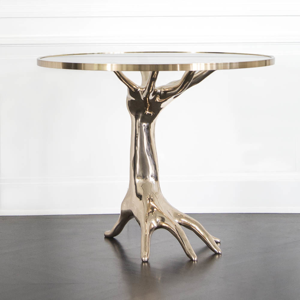 豪华雕塑的Dichotomy桌是一款令人惊叹的独特陈列桌,灵感来自古典的比喻装饰。 底座采用青铜铸造,手工精心打磨。 钢化玻璃顶部采用匹配的青铜饰边。 直径36英寸,这张桌子是一个完美的入口,或强调一个正式的座位群。 Dichotomy桌有青铜或油擦青铜饰面。