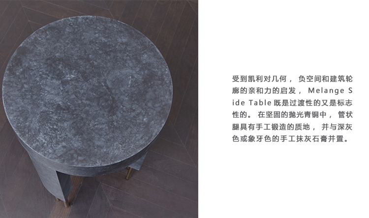 受到凯利对几何,负空间和建筑轮廓的亲和力的启发,Melange Side Table既是过渡性的又是标志性的。 在坚固的抛光青铜中,管状腿具有手工锻造的质地,并与深灰色或象牙色的手工抹灰石膏并置。
