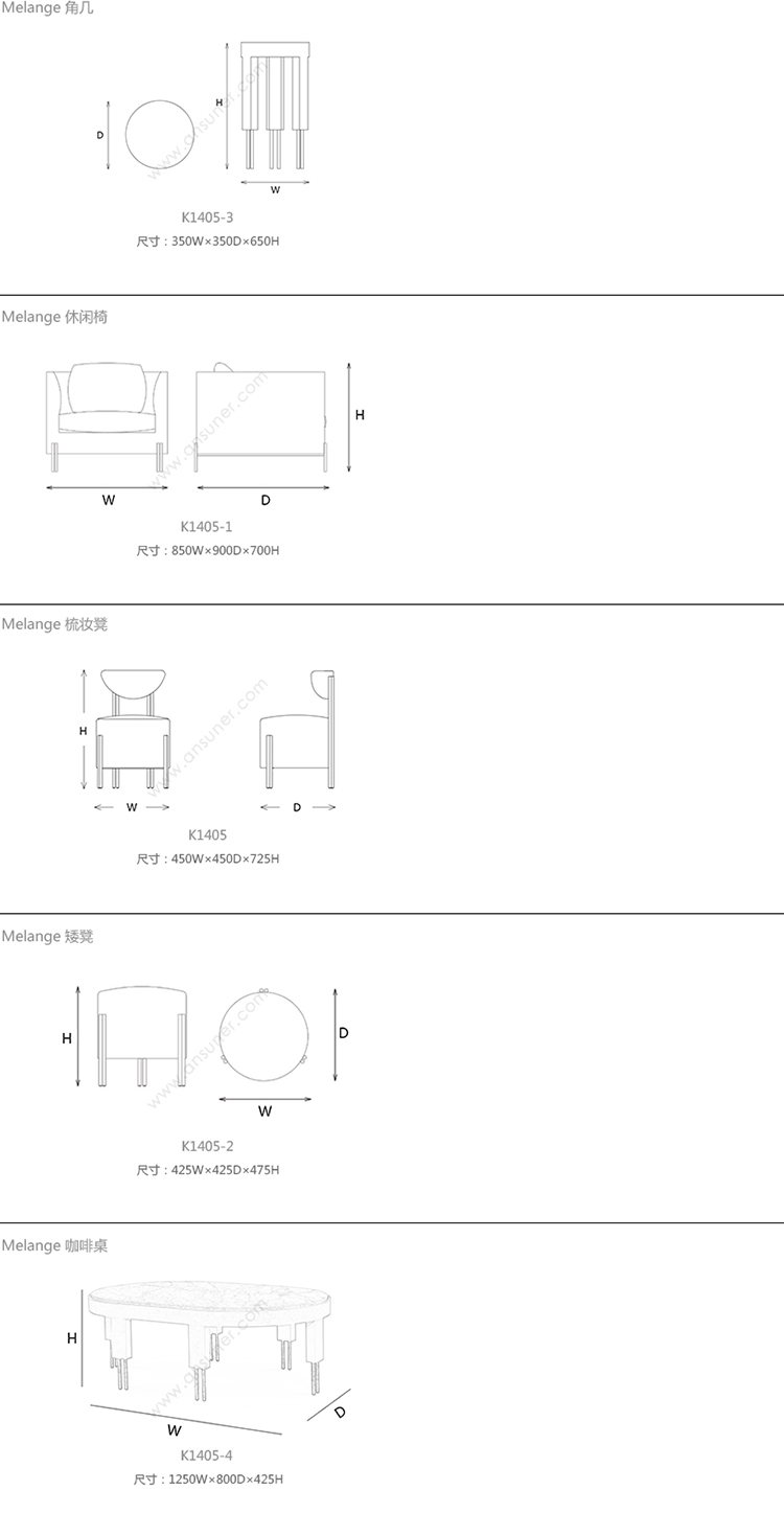 Melange 边几 系列尺寸/示意图