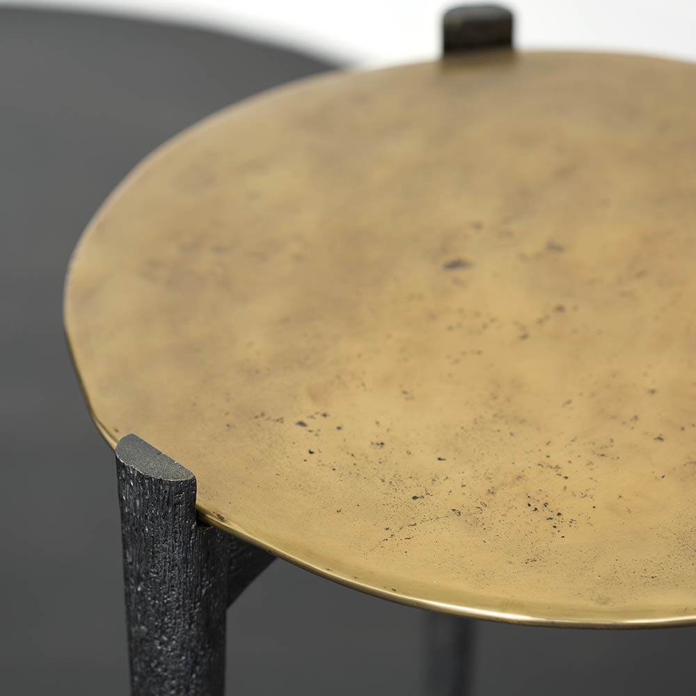 可能是我们所有边几中最复杂的,Garcon桌子有三条腿用黑色铝铸造,逐渐变成黄铜球脚。 腿部的纹理就像雕刻的木头和坚固的青铜顶部,带有抛光的青铜色,具有手工锻造的雕塑品质。