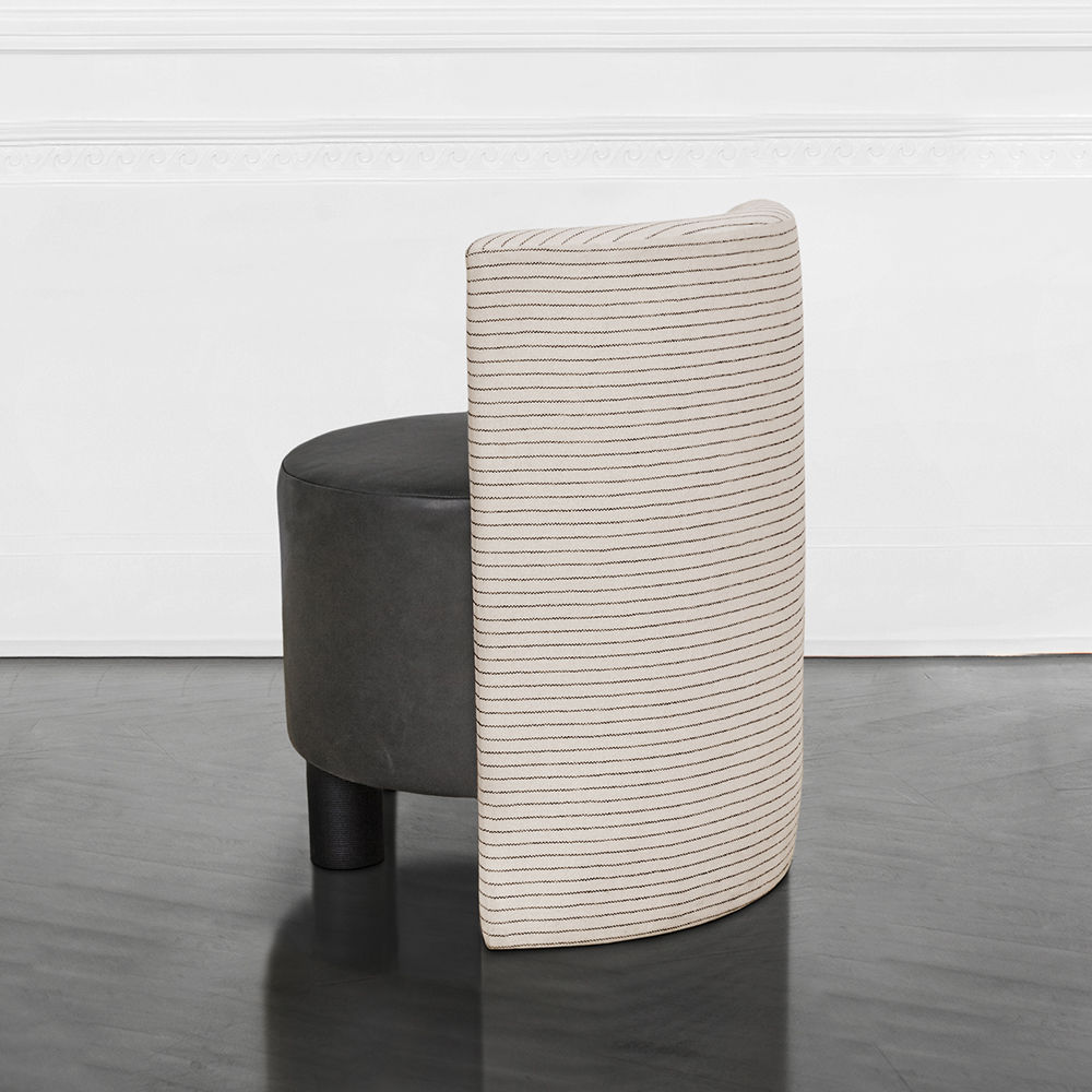 这种低矮的椅子或凳子结合了一些简单的体量和纹理,创造了一个戏剧性的临时座椅。鼓形座椅与垂直的背部相接,形成后肢,椅子的前部位于一对粗壮的圆柱形肋腿上。 这是梳妆台或休闲客厅布置的理想座位选择。 腿部饰面选项包括漂白,天然和黑檀木。 提供精选面料和皮革。