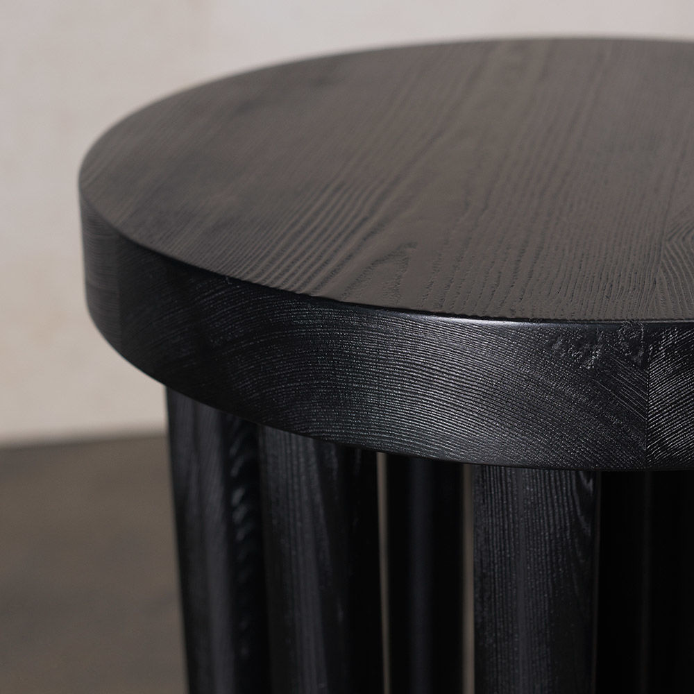 Drexel边几有机和雕塑,突出了艺术与功能之间的俏皮二分法。这个小巧的侧边桌以道格拉斯冷杉为特色,采用碳化处理,喷砂以增强木材的动态纹理图案。