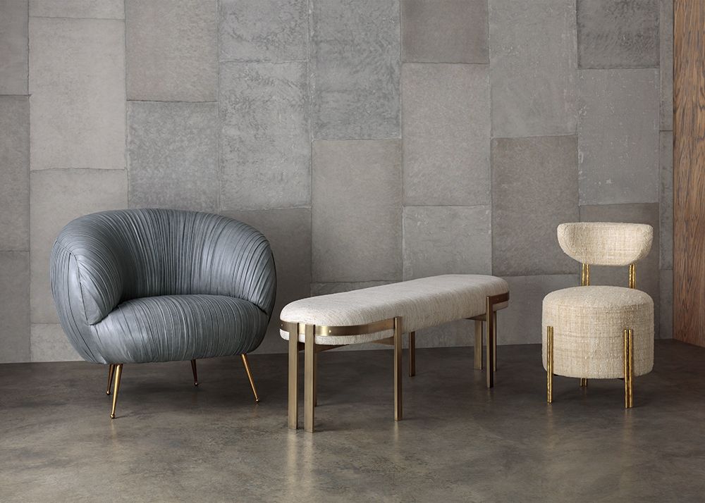 标志性的Elliot长凳结合了简洁的线条和经典的白话。 这款软垫长凳采用成对的黄铜棒料腿,饰有抛光黄铜或油擦黄铜饰面。 座椅有各种精选面料和皮革可供选择。