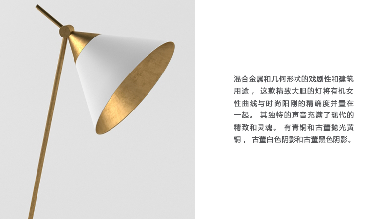 混合金属和几何形状的戏剧性和建筑用途,这款精致大胆的灯将有机女性曲线与时尚阳刚的精确度并置在一起。 其独特的声音充满了现代的精致和灵魂。 有青铜和古董抛光黄铜,古董白色灯罩和古董黑色灯罩。