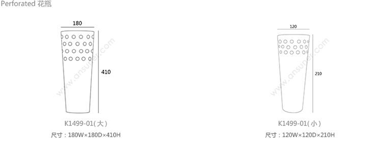 Perforated 花瓶 系列尺寸/示意图