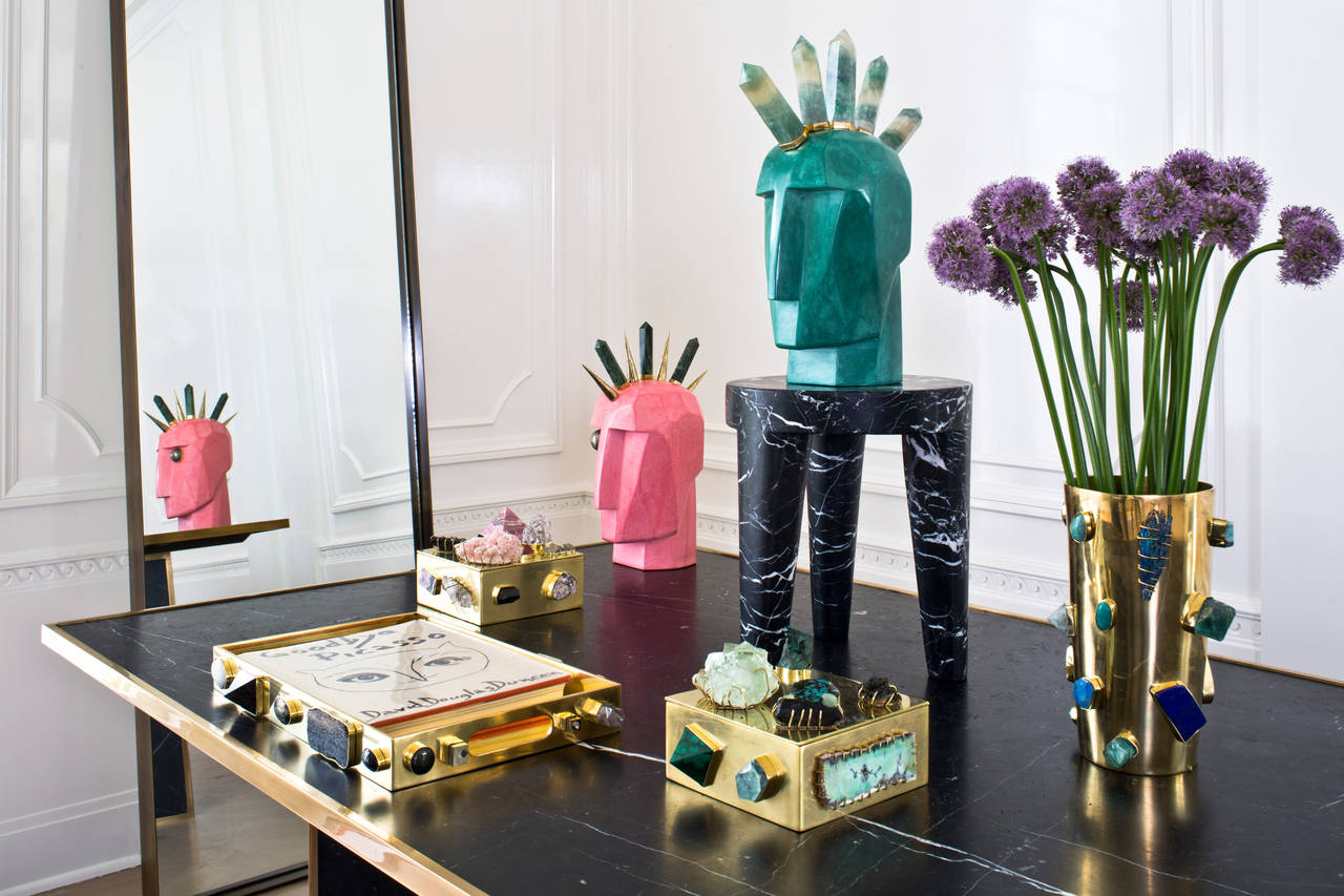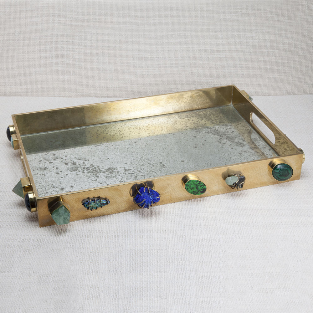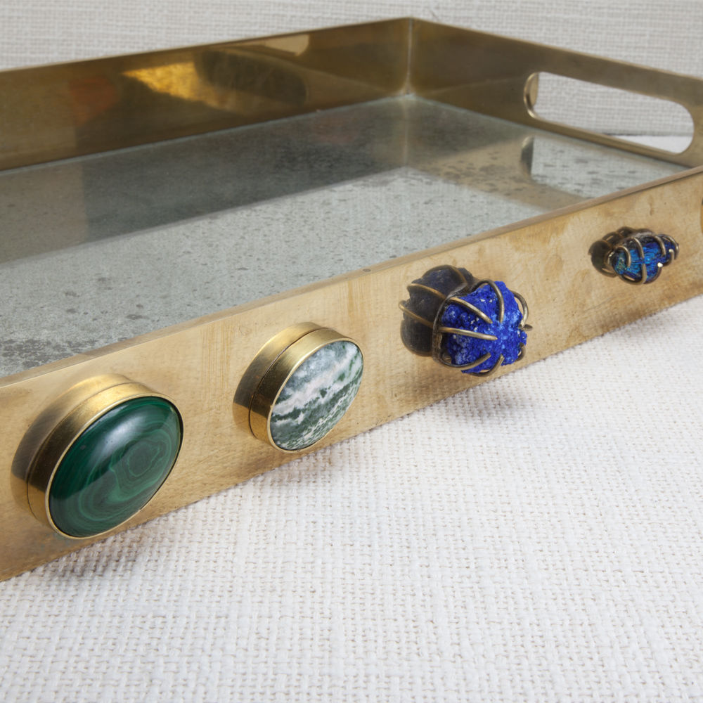 独一无二的托盘采用从世界各地收集的手工精选石头。 它采用抛光黄铜制成,是一款灵魂时尚的配饰,为任何空间增添精神和色彩。
