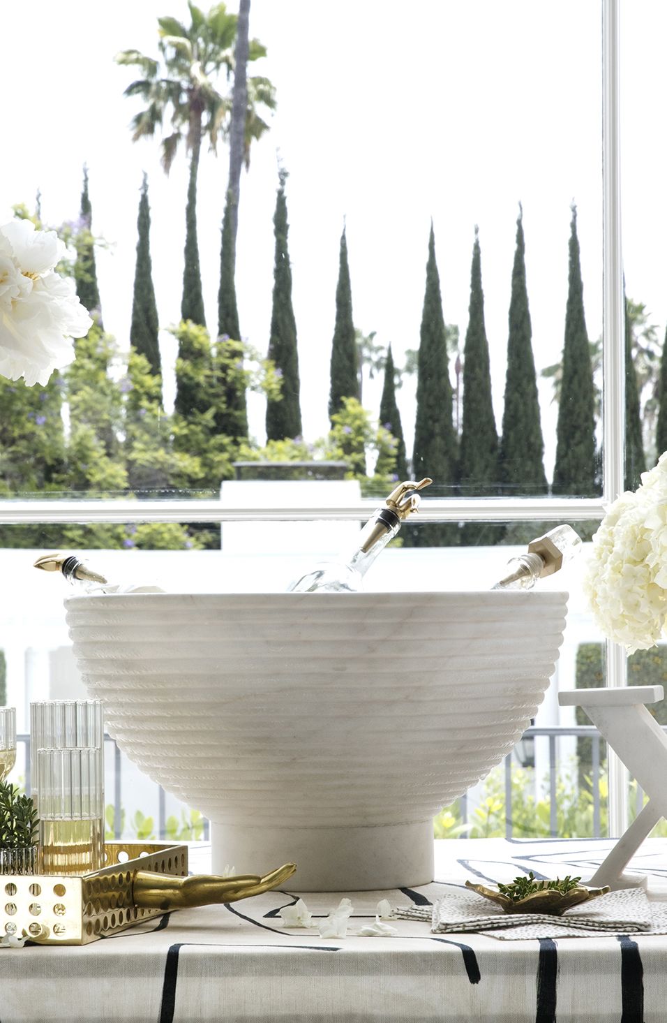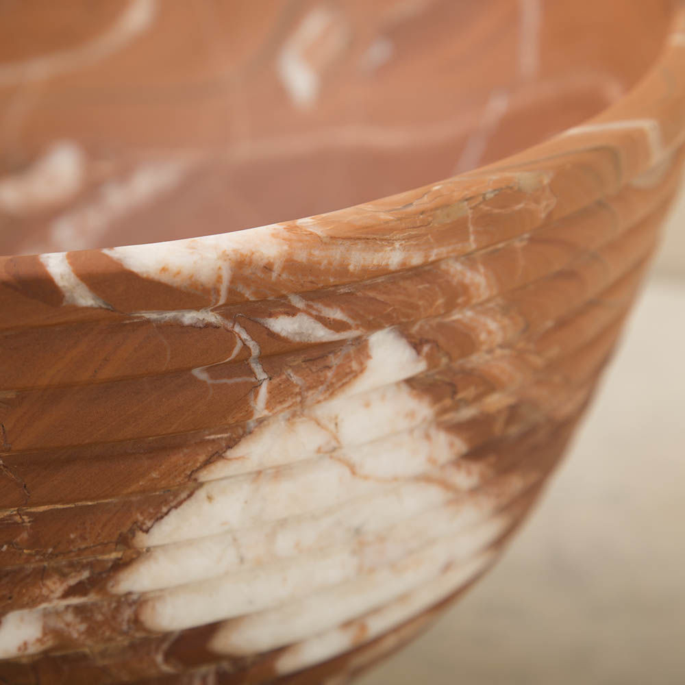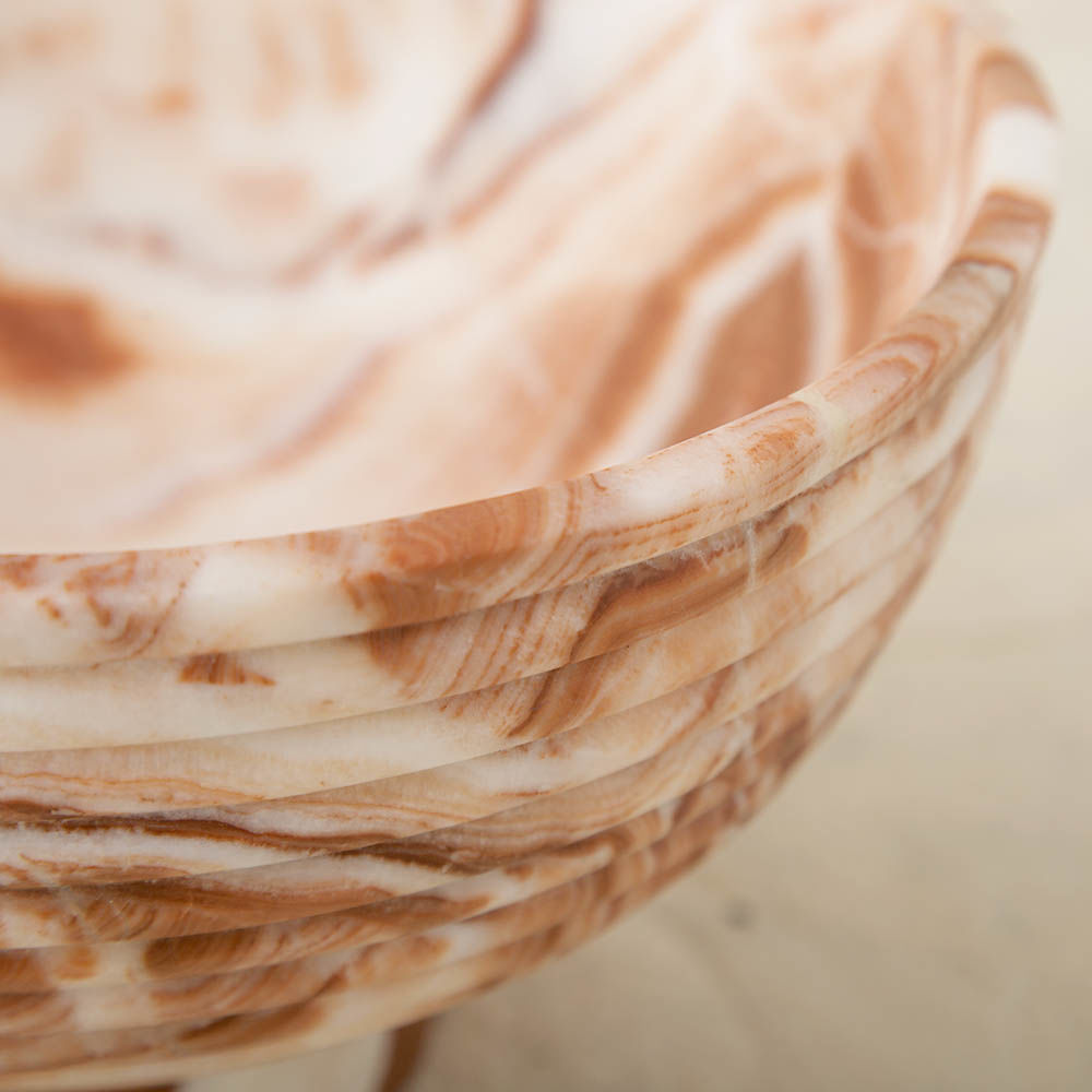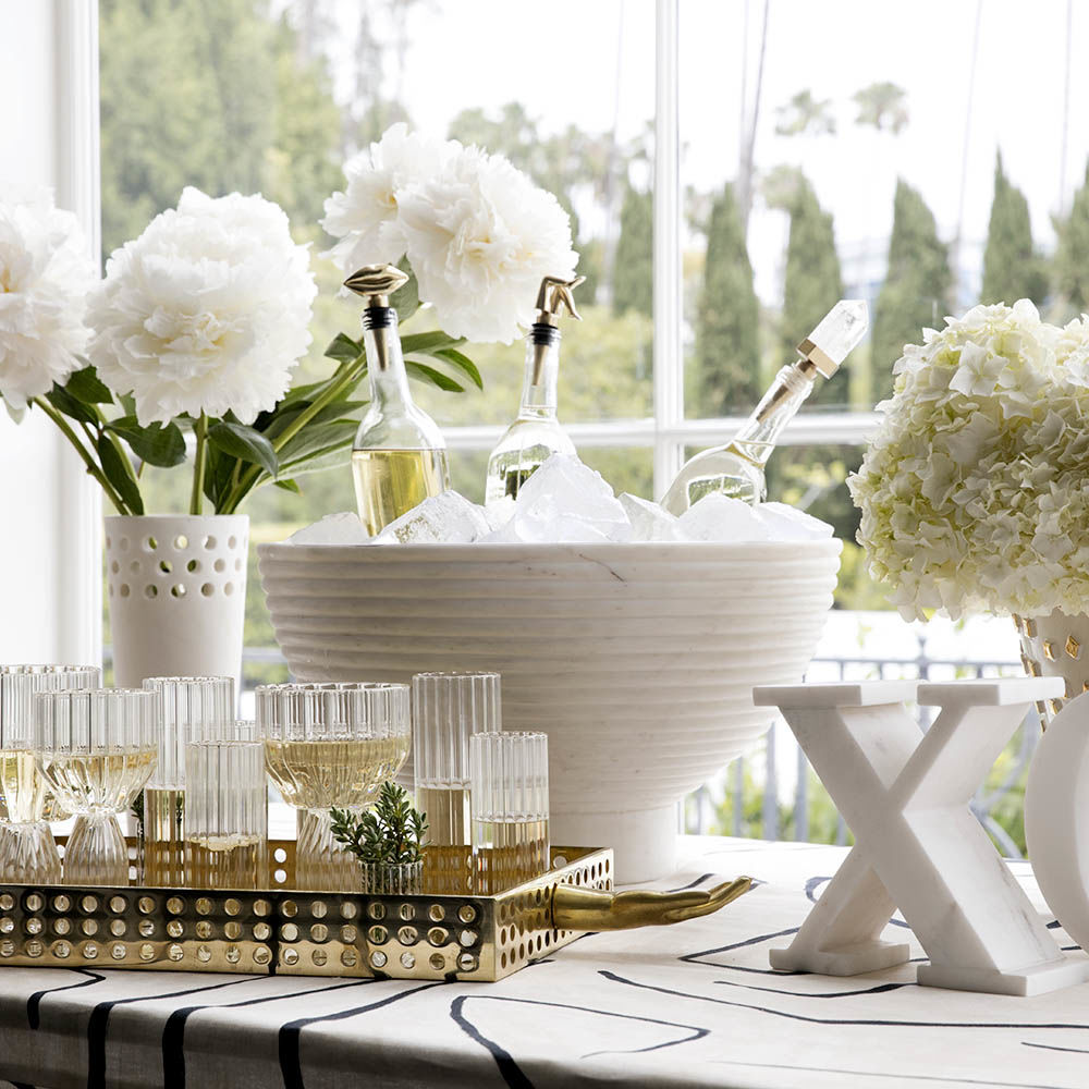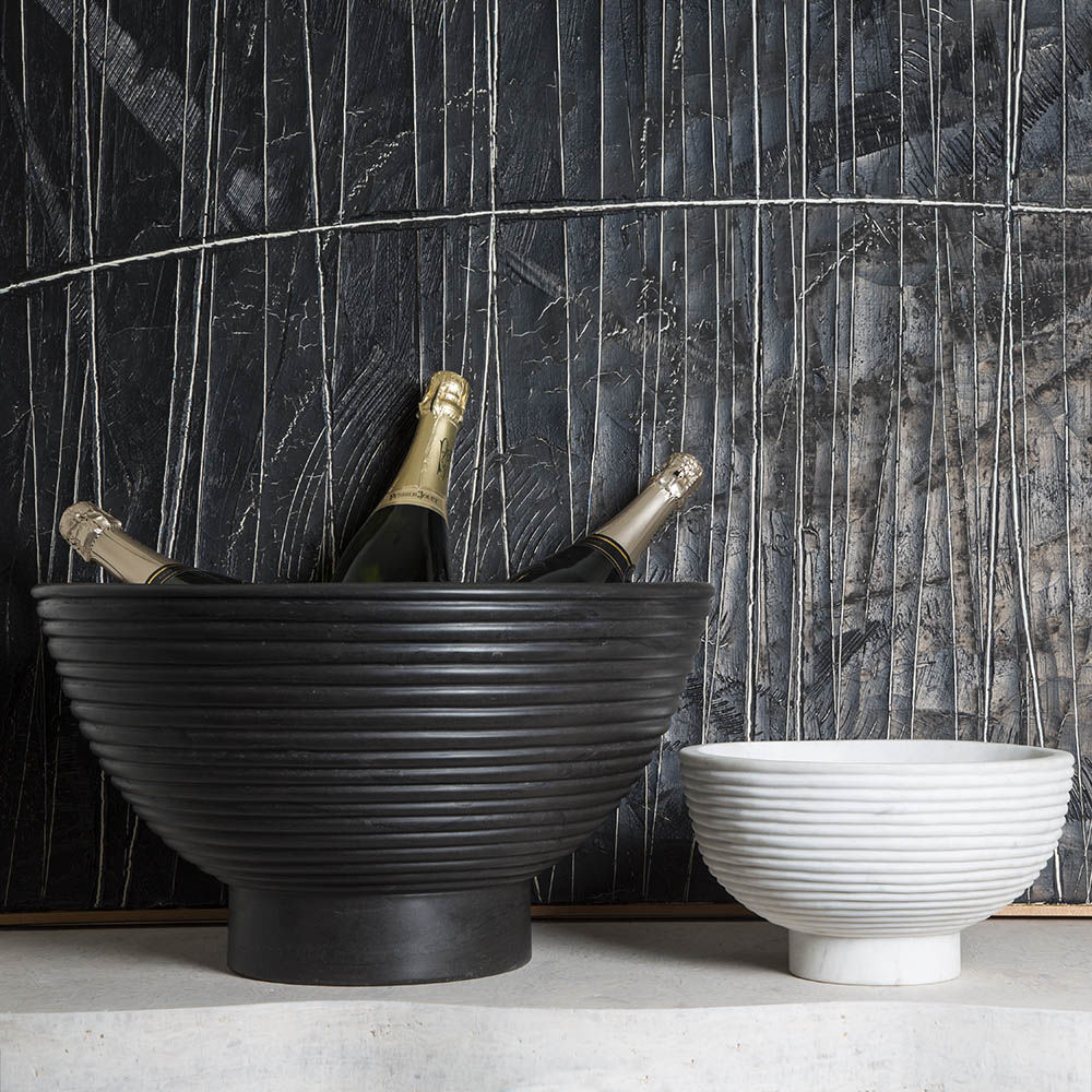 这款宽大比例的香槟碗采用坚固的大理石手工雕刻而成,并饰有柔软的罗纹外观。 其罗纹外观为碗提供了罕见的精致,大理石的优雅将与您的家居相得益彰。 每件作品都是独一无二的材料,旨在适应任何数量的娱乐功能和场合。 香槟酒杯可容纳冰块,最多可装四瓶香槟,食物安全。 大理石是一种天然材料,因此可以发生标记和着色的变化,使每个碗成为独一无二的。