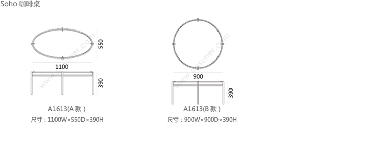 Soho 咖啡桌 系列尺寸/示意图