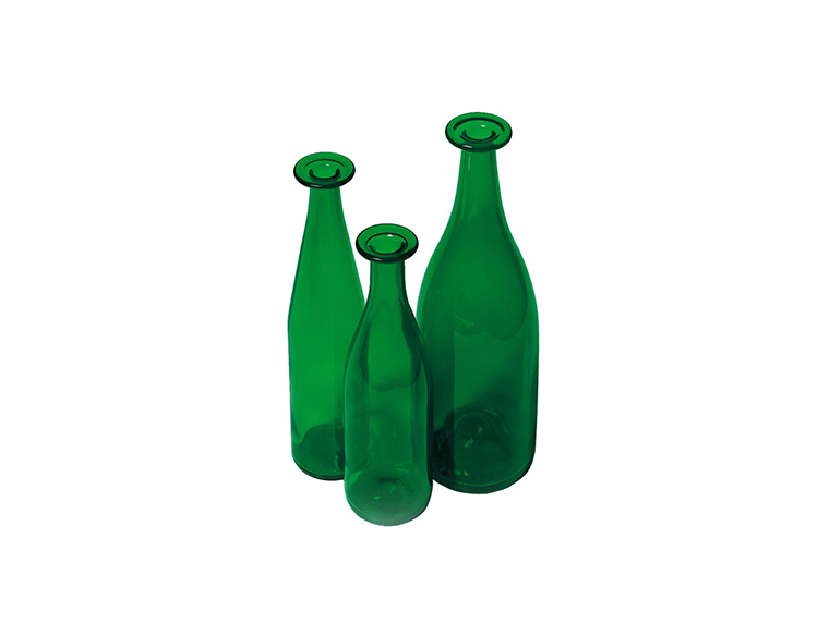 这些瓶子也可以用作花瓶,并由彩色玻璃浆料制成; 颈部由大师级玻璃制造商手工制作。 可用的饰面是:中小瓶的深绿色和大瓶的浅绿色。