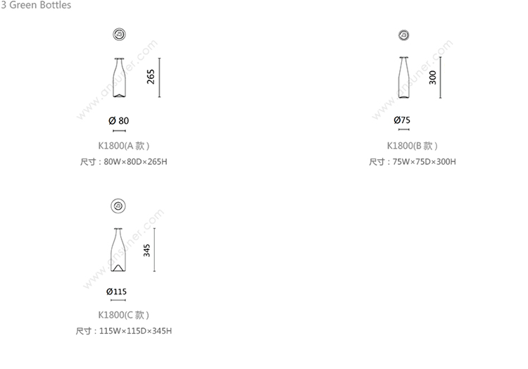 3 Green Bottles 系列尺寸/示意图