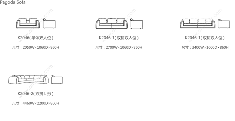 Pagoda Sofa 系列尺寸/示意图