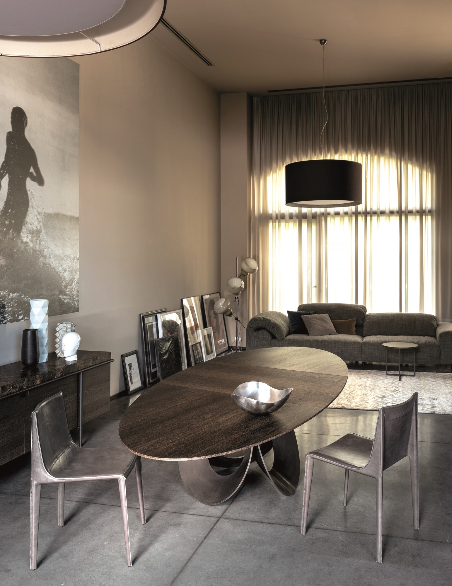 由吉诺·卡罗罗(Gino Carollo)设计的Oracle餐桌是圆形的几何形状,是完美的象征。家具的形状表现出整体性和中心性。圆形或椭圆形的桌面是由MDF镶嵌在莫卡橡木或柚檀木上。直径为200CM的桌面也可以使用啡网纹大理石桌面。它独特的底座就像生命之花的构造:三个重叠的圆圈,似乎围绕着一个点旋转。该金属的底座可用云母棕色、黄铜、钛或新草灰色抛光。