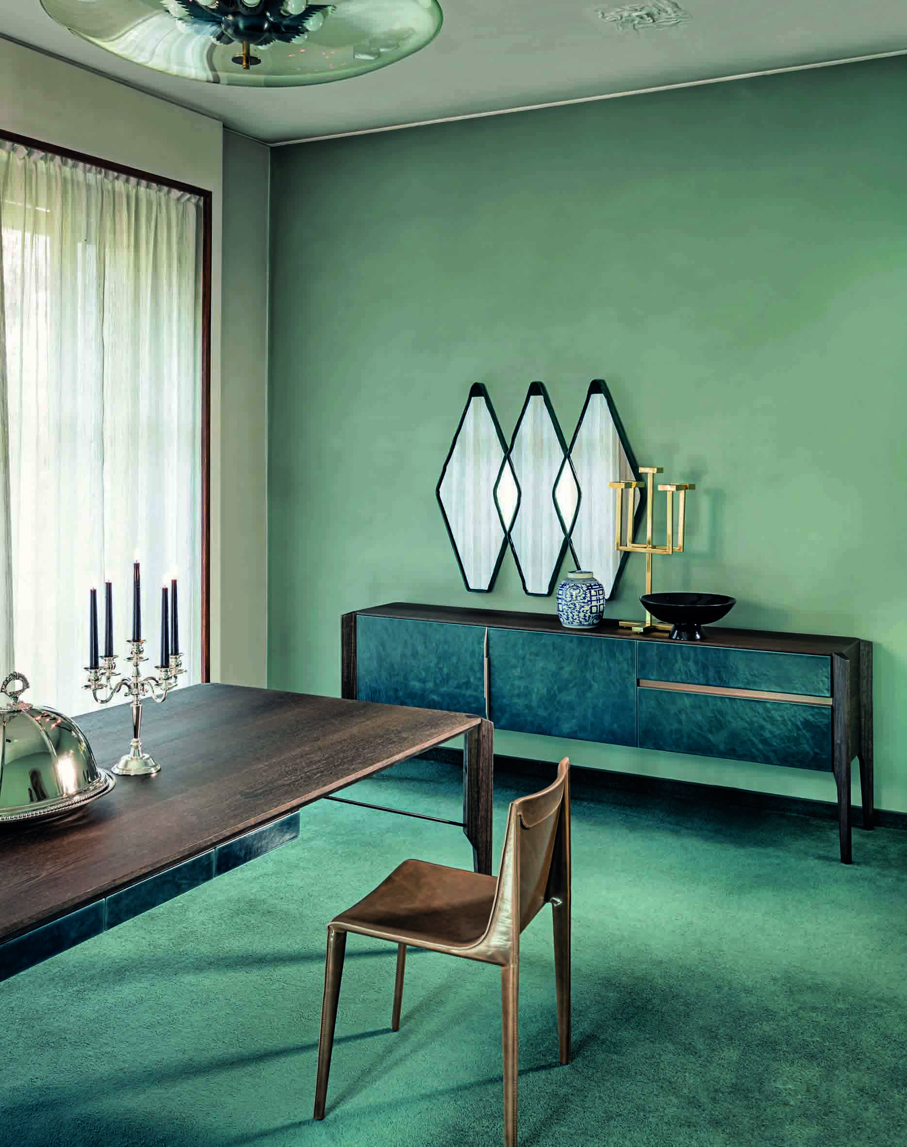 Manzoni & Tapinassi设计的椅子有严格的几何特征,它有一个宽大的座椅和一个较低的靠背,可以用皮革或植物鞣皮革饰面。