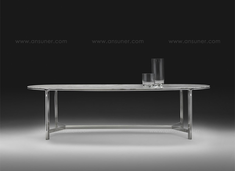 这是一张优雅的餐桌,也被解读成圆形的咖啡桌。CLARKE的金属结构是由腿部延伸到大理石或实木的桌面。桌面以一种不同寻常的椭圆形形式存在,同时保留坚定地结构。