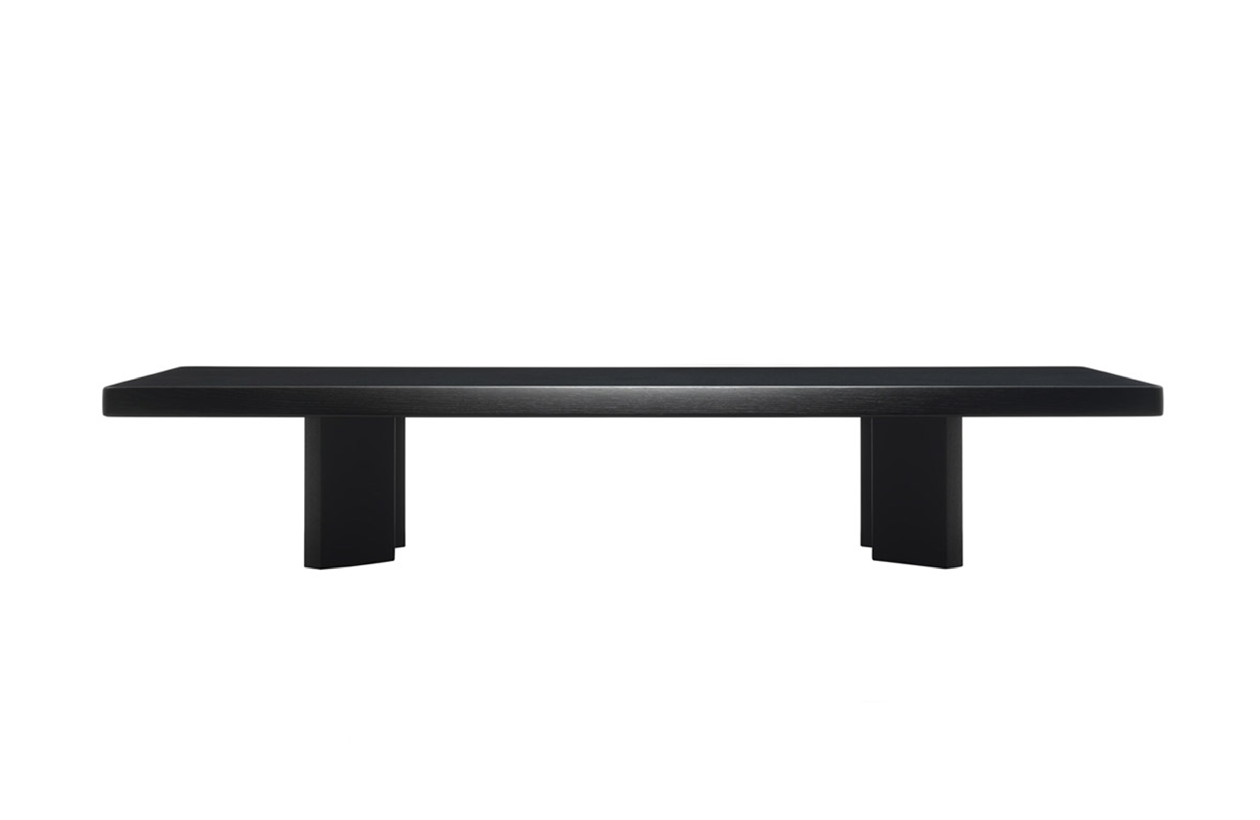采用哑光黑色的珍贵木材或黑色实木橡木或美国黑胡桃木制造的矮桌。桌面厚度和凹面刻画了正式用语中的模型特征,并创造了令人讶异的轻盈感。该款矮桌是于1969年为日本驻巴黎大使馆设计的,这款咖啡桌是技术和中继合成的胜利。