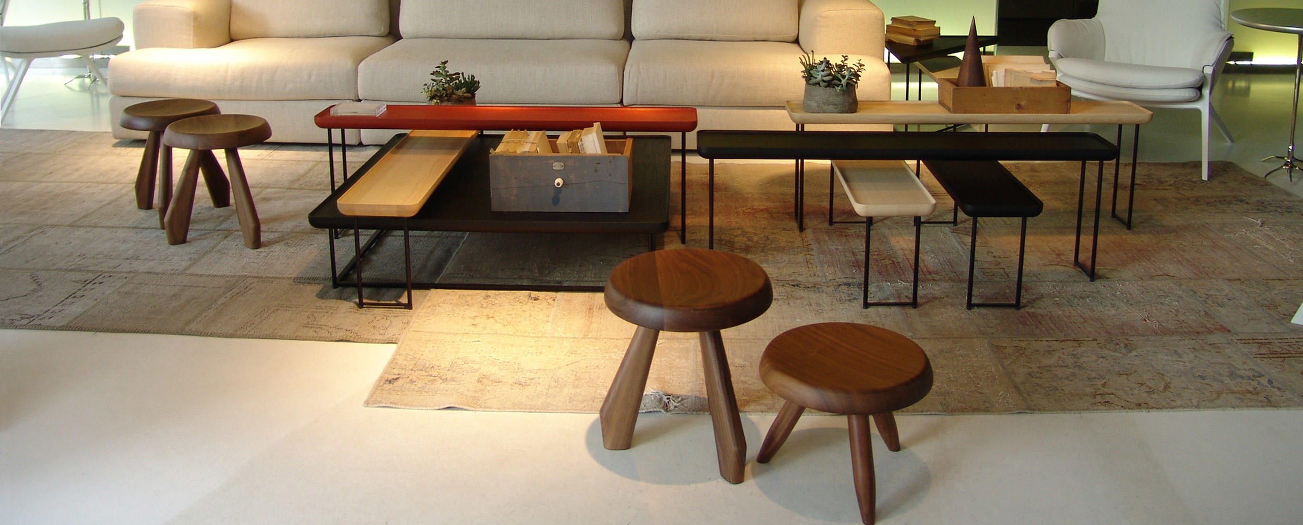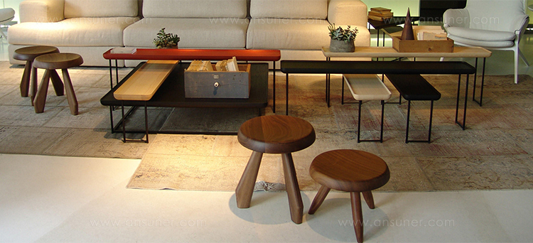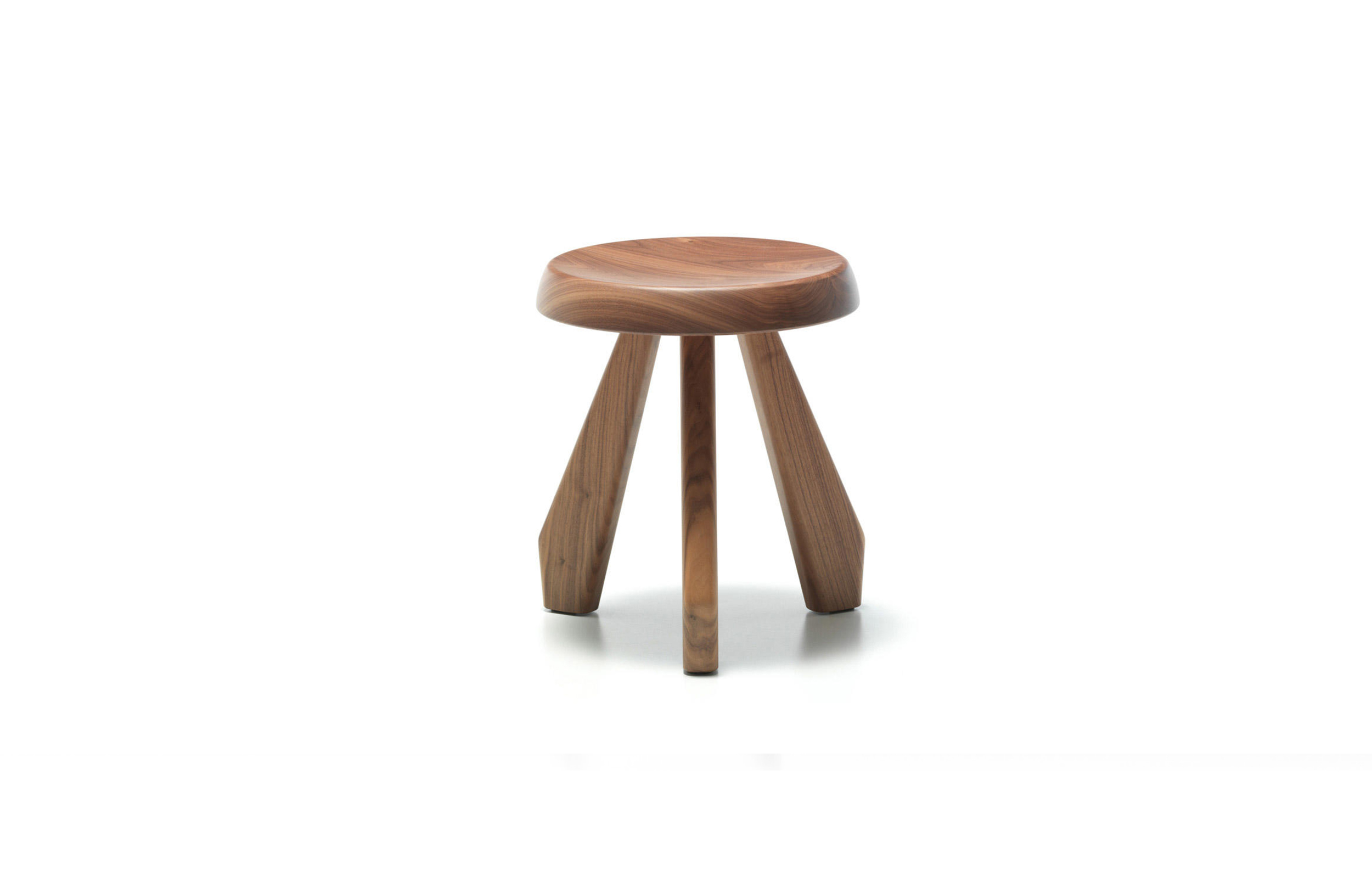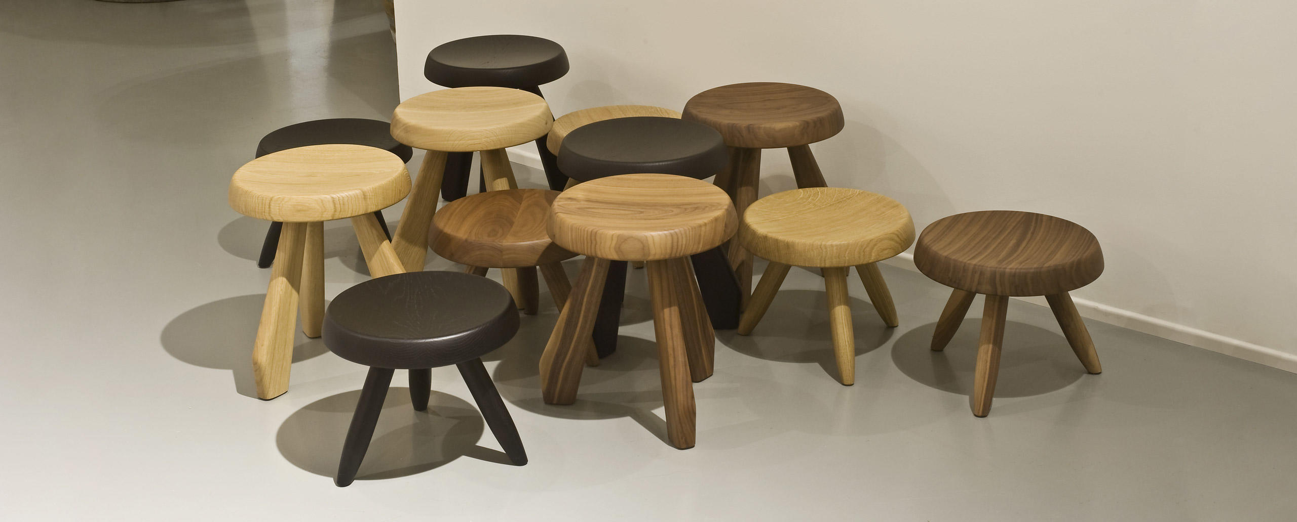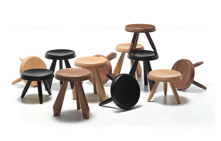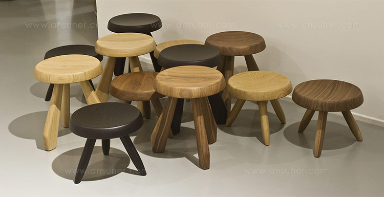Tabouret Berger 低脚凳第一次在1955年于东京Synthese des Arts展出。采用自由主义风格,正如其名字所暗示的一样,该凳的灵感来自牧羊人所用的凳子。该凳采用三条“圆棍型”凳腿,提供三种不同实木饰面:天然橡木、哑光黑色橡木和天然美国胡桃木。
