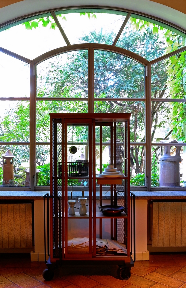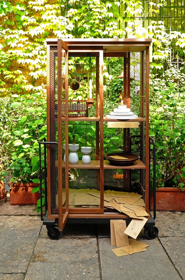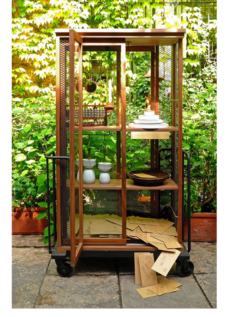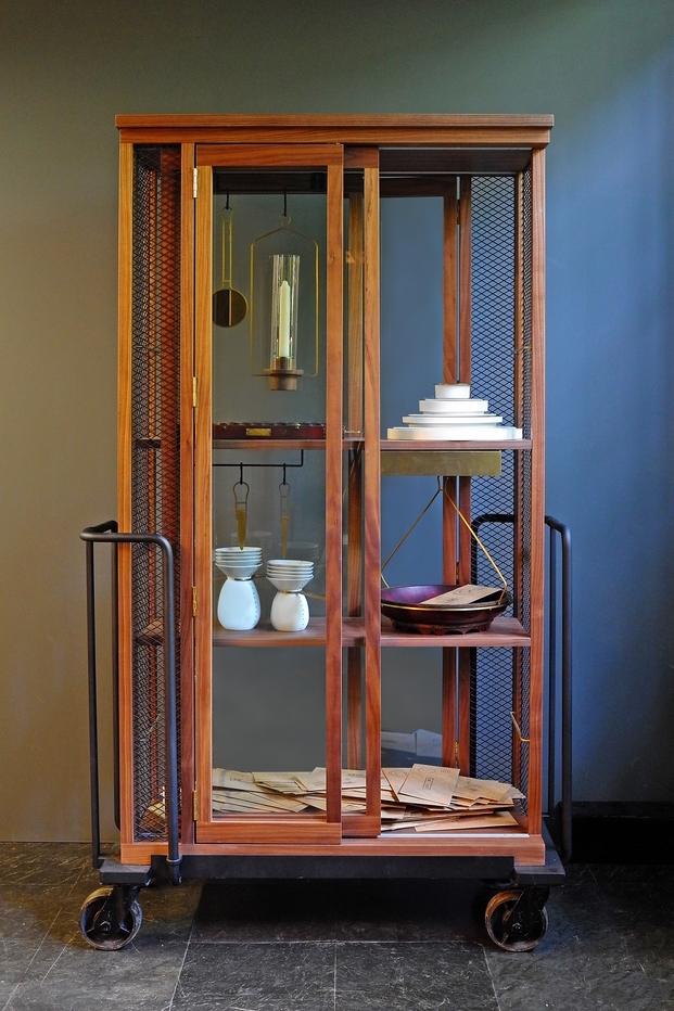 带玻璃门的木柜是从KIHARA陶瓷烧制金属手推车受启发设计,推车进入火炉,该炉代表着我们在生活中都会遇到的考验和磨难,从中我们贡献的汗水和泪水,痛苦和快乐。然而,正是通过燃烧这些罪恶和秘密,我们得以洗净。秘密揭晓或深藏起来,皆取决于我们自己。