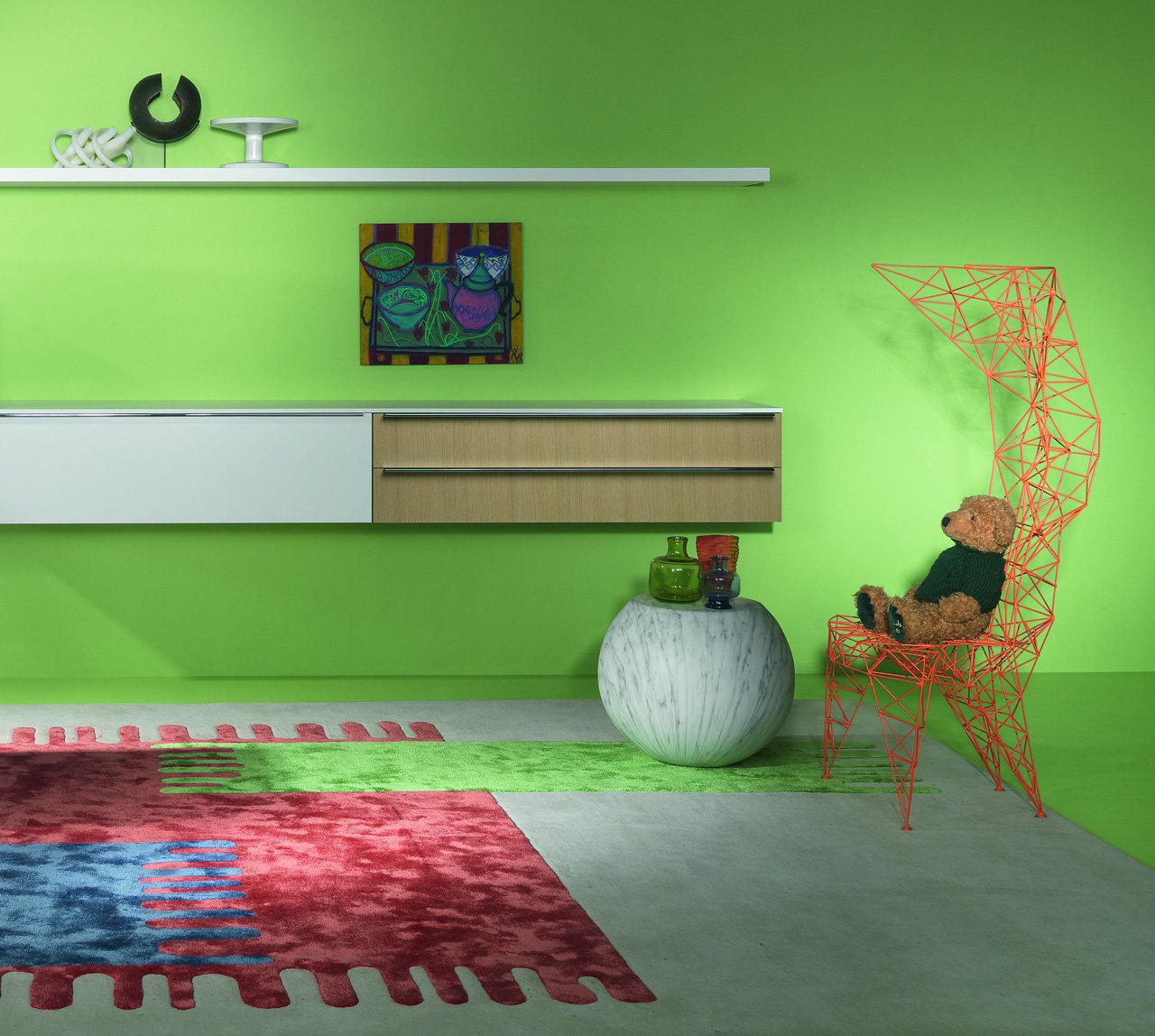 3mm直径钢杆的晶格功是最大强度的三角化-这是一种在纯朴素结构中的练习。最初的灵感来源于早期的电脑编程、电塔和桥梁的建筑模型都清晰可见这是自学结构工程的快乐练习。现在粉末涂在明亮的皇家蓝色的塔椅,虽然可能不是世界上最舒适的椅子,却是最可识别和独特的。