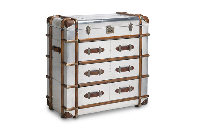 "慵懒、我行我素、精致、时尚,还有那么点怀旧的味道,Timothy Oulton家居的产品就是用这些无可替代的特点,征服了各国的英伦家具爱好者们。重提浪漫时代的长长的豪华海上航行,Globetrekker 系列的灵感来自Timothy Oulton于1914年在一个古董市场发现旅行箱,他深深的被复杂细节和美丽的黄铜板的旅行箱迷住了,Oulton拆解了那个古色古香的旅行箱并进行重新设计出一系列作品,它涵盖的灯表、 箱子、 咖啡桌和书柜等集合。捕获真正的魅力,还原精致工艺的旧古董皮箱的精髓,通过怀旧的贴纸饰面样式,采用老木、优质的老式皮革和黄铜铰链,通过精湛的手工处理完成了这套系列。