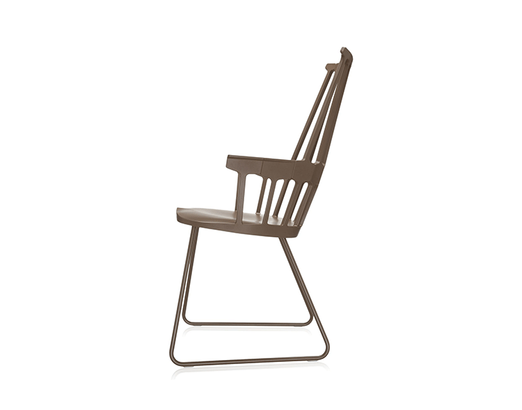 温莎风格椅被冠以乡村风格,但并非一成不变,在不同时期不同阶段又融入新的设计元素。Kartell的这款产品再一次享受重现经典的设计快乐,国际知名家居设计师Patricia Urquiola为温莎椅(Windsor Chair)打造了一个这款新的造型。回归十八世纪英格兰的辉煌时期“梳背”椅的特点,整个框架用亚光材质,靠背的7个分支结构朝着椅腰部位向下延伸,在一个加固六角形圆圈处与纤细的轴汇合,与椅座合为一体。聚碳酸酯材质的使用赋予COMBACK一种轻盈的质感和当代风格。浸透在黑色COMBACK梳背椅里的那一分淡定从容,能让人气定神闲,默默却又不留情面地将浮华虚荣隔在门外。因为不存在彩色光谱里,白色可以说并非真正色彩。纯白色Comback Chair梳背椅,唯美得让人难以抗拒。那种与世无争的清雅,好似刚刚落入凡尘的花瓣,昭示宁静与自然。这款Comback Chair 来自意大利的创新品牌Kartell,以发梳为灵感,回归18世纪英式风格,整齐对称的典雅扮相,表现出一份沉稳内敛的韵韵意涵。木质椅角的运用,让复古气息升华其中。配搭塑料椅身的现代风格特色,不愧为一份跨越历史的新时代作品。荣获2011年Wallpaper设计奖殊荣。