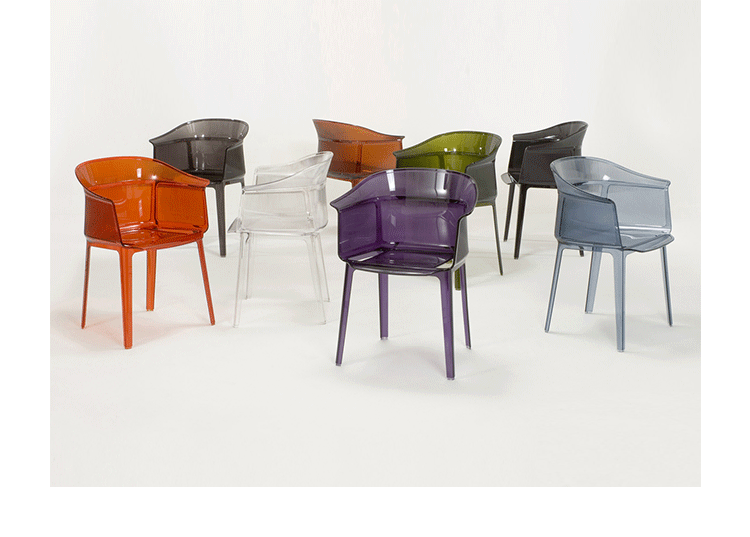 Papyrus Chair(纸莎草椅)是由Ronan & Erwan Bouroullec法国兄弟设计组合于今年为Kartell公司设计,并且在本次的米兰家具展中进行了展出。该设计的灵感来自于一把结构鲜明的古老座椅Linear,座椅本身非常舒适且重量很轻。其共有透明、黄、绿、紫、烟灰、棕、蓝和红八种颜色。这把椅子结合半透明的脚架,脚架“打磨”纤细的卵石状颗粒,并延伸至整个靠背的外轮廓,线条柔软和舒适。和整个结构都是透光的。因惊喜的做工和颜色的运用,使其非常吸引人。