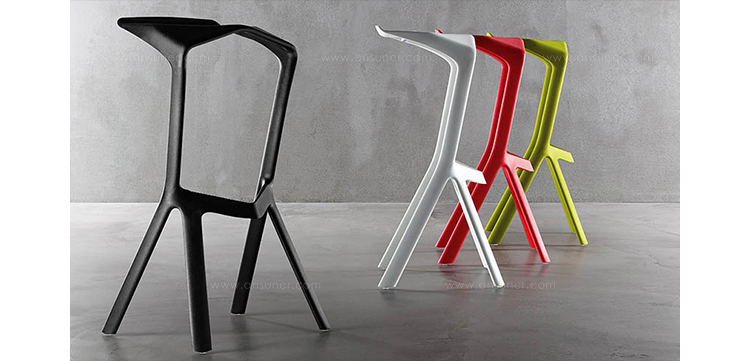 Miura Stool(鲨鱼嘴吧凳)是德国设计师Konstantin Grcic(康士坦丁·葛切奇)的设计作品,由增强聚丙烯生产(注入),一体成型。创新注射技术以及家具生活对高脚凳的需求,使Miura Stool(鲨鱼嘴吧凳)成为了可能。鲨鱼嘴吧凳有一个动态形状,完美的结合了人体工学,强大而富有表现力。由于其材料和功能性,其适用性非常广泛,可以用在自助餐厅、小酒馆等餐饮行业,也可用在个人家庭,养老院,商业空间等等。鲨鱼嘴吧凳可提供多种颜色选择,并叠叠,减少空间占用。