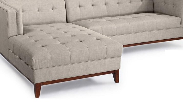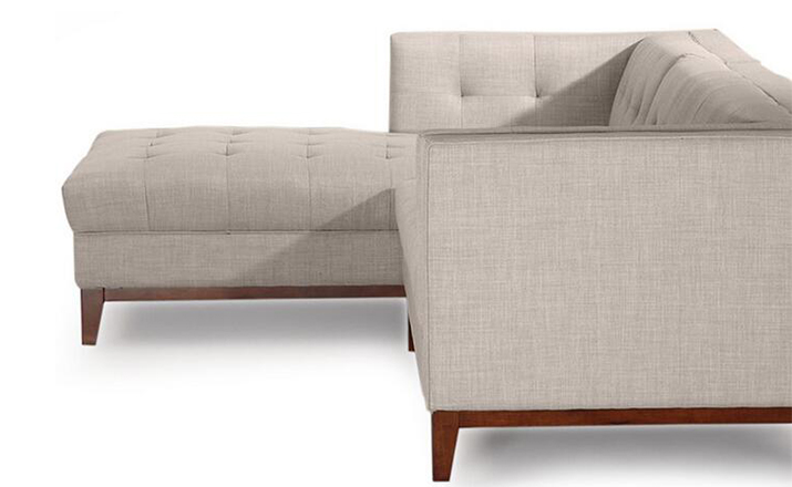True to the original,the front edge of the seat cushion is upholstered in a 1-piece design,seamless and piping free for a clean appearance.The extending chaise is built as one unit into the sofa element providing an exceptionally clean side profile(see images).The hand-crafted quality of Harrison features kiln dried solid hardwood legs.A foam wrapped, kiln dried wood frame provides the structure from which the entire sofa is built upon.