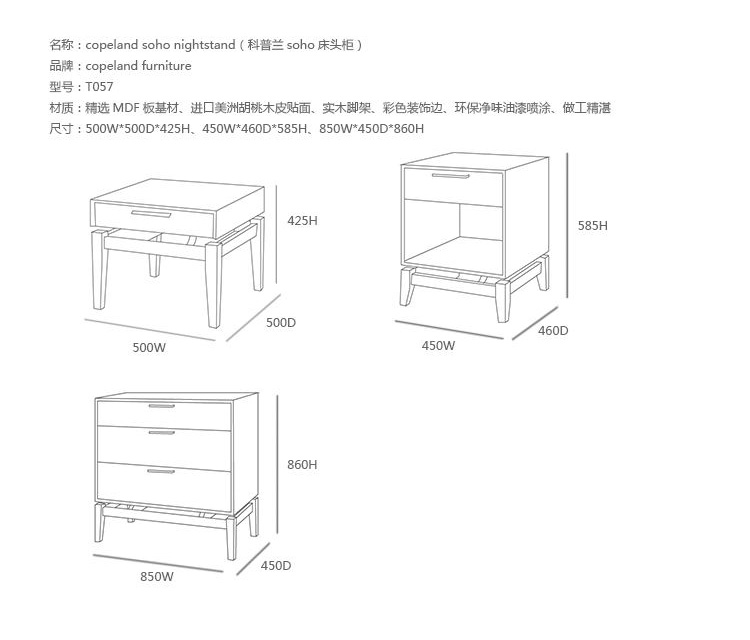 copeland soho nightstand(科普兰soho床头柜)是Copeland Furniture公司copeland实木系列之一。我们塑造环境,然后环境塑造我们,copeland旨在传递的舒适度和清晰度的感情。设计借用了一些最优秀的传统和当代的设计要素,非常具有特色。制作采用精选MDF板基材、进口美洲胡桃木,贴面、实木脚架、彩色装饰边、环保净味油漆喷涂、做工精湛。