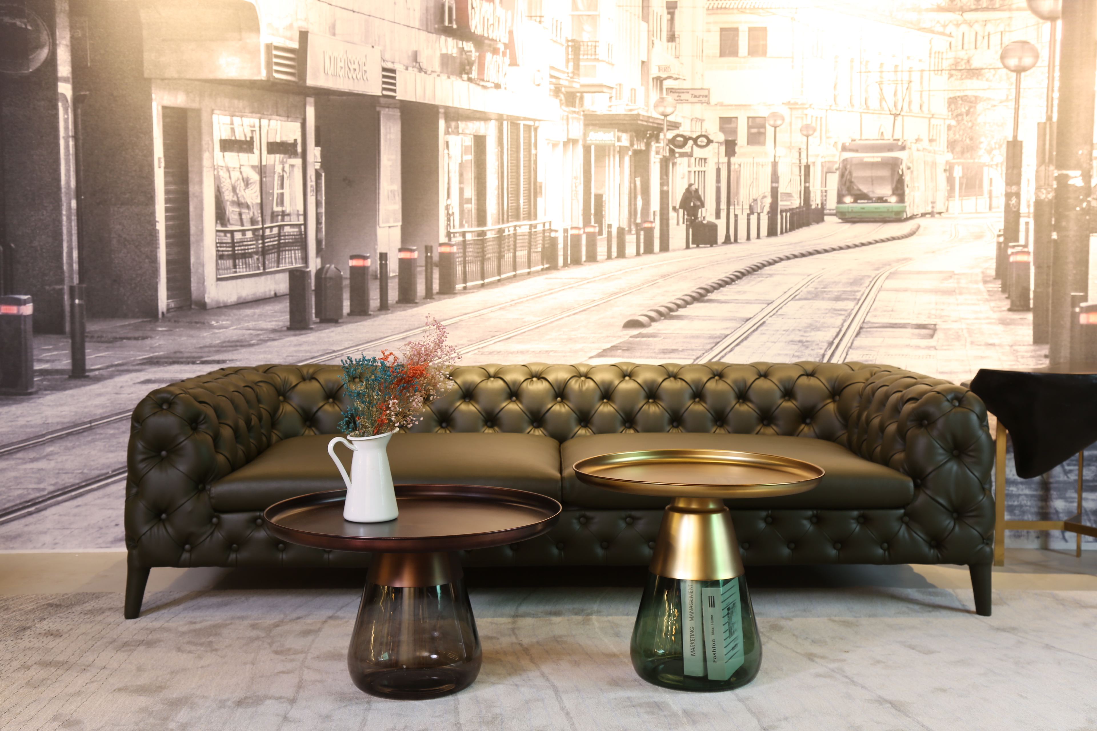 这款半透明带有色彩的玻璃和铝合金组成的手捧咖啡几,有着穿越历史长河的影子,竟像是宫廷画中拿出来的一般,底座的玻璃带给人温润如玉的视觉和触觉的通感。