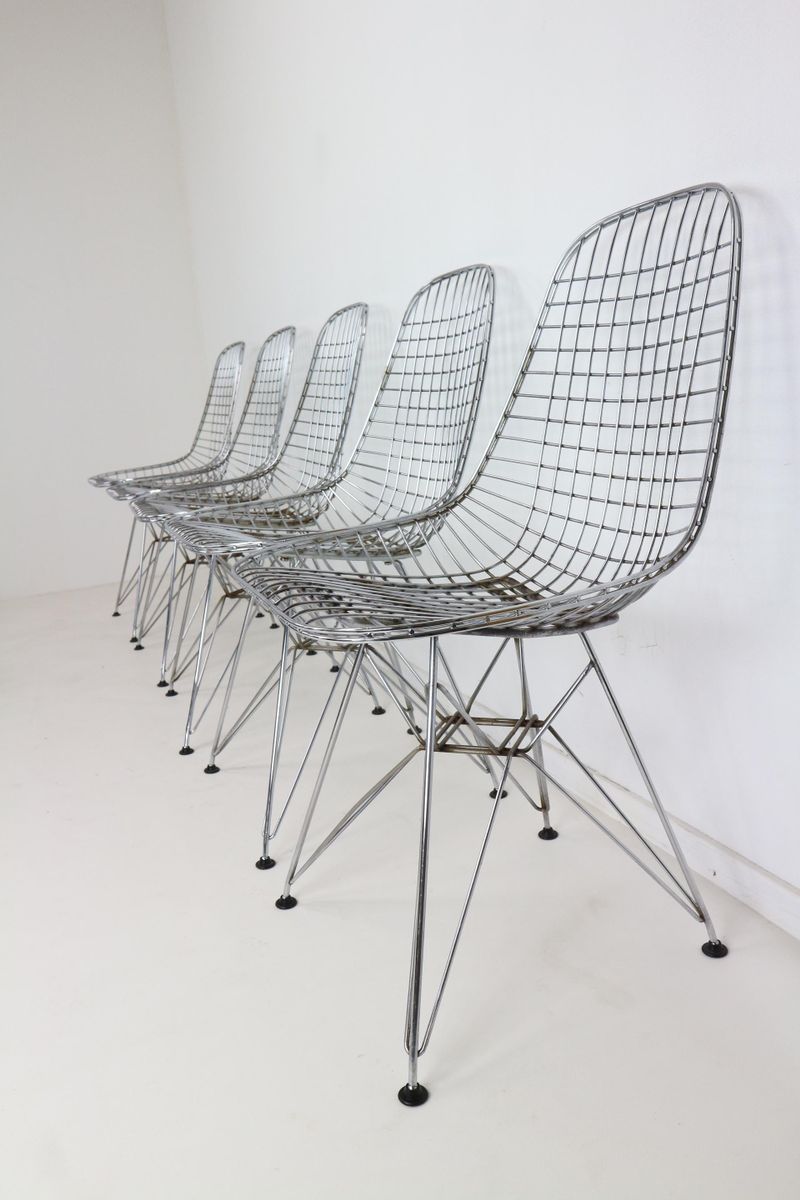 Charles & Ray Eames 1951 年發表的 Wire Chair 系列,以一片式有機網狀椅座,延伸變化出一系列不同椅腳及座墊搭配的單椅,這系列椅款輕巧透明的設計,在 60 年代可說是運用了當時最先進的技術來製作,靈感則是來自於鏤空的金屬收納籃,金屬條交織的椅座,彎曲的弧面不僅符合人體工學,在視覺上更具有穿透性。