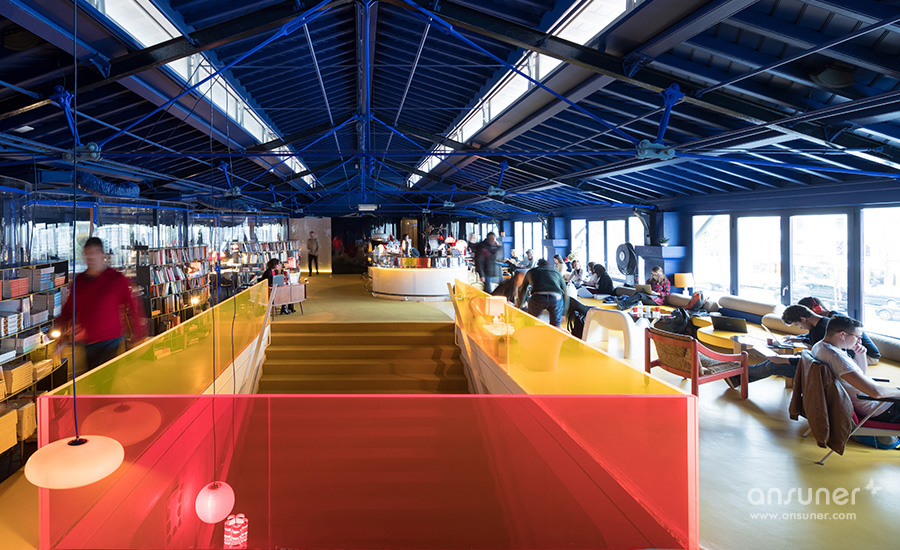 偌大的空间并没有过多的修饰,在如此开敞的空间里,建筑自身的钢梁和桁架就是最美的装饰。second home里斯本24小时全面开放,这里配置了四间私密的会议室、一处公共咖啡区和一间图书室;最棒的是为冲浪爱好者安排的海岸穿梭巴士。此外,多元化的开放场景还能举办音乐会、播放电影以及其它社交娱乐活动。 PS:Selgas Cano之前为second home设计了其在伦敦的联合办公空间,令人印象最深的就是橙色管道空间的设计,时尚办公网将在后面分享给大家。